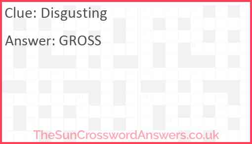 Disgusting is a crossword clue for which we have 3 possible answer and we have spotted 16 times in our database. This crossword clue was last seen on 16 March 2025 in The Sun Coffee Time Crossword puzzle!