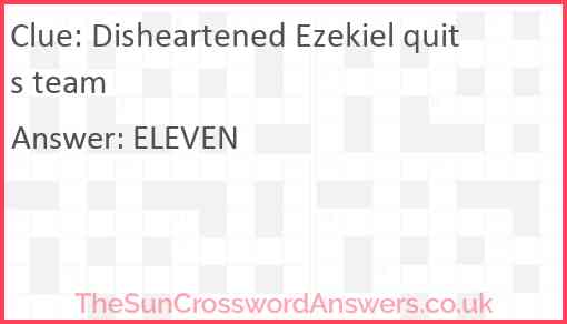 Disheartened Ezekiel quits team is a crossword clue for which we have 1 possible answer and we have spotted 3 times in our database. This crossword clue was last seen on 18 March 2025 in The Sun Cryptic Crossword puzzle!