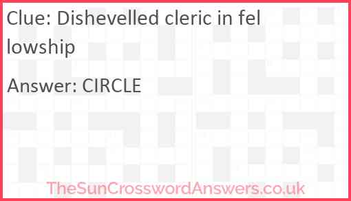 Dishevelled cleric in fellowship is a crossword clue for which we have 1 possible answer and we have spotted 1 times in our database. This crossword clue was last seen on 11 December 2019 in The Sun Cryptic Crossword puzzle!