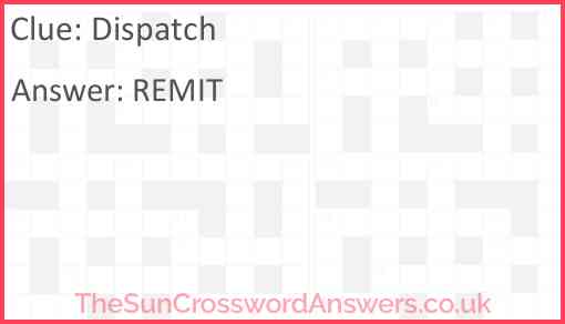 Dispatch is a crossword clue for which we have 2 possible answer and we have spotted 8 times in our database. This crossword clue was last seen on 19 July 2024 in The Sun Coffee Time Crossword puzzle!