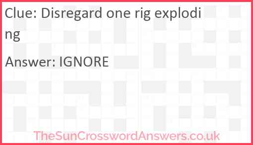 Disregard one rig exploding is a crossword clue for which we have 1 possible answer and we have spotted 4 times in our database. This crossword clue was last seen on 08 October 2022 in The Sun Cryptic Crossword puzzle!