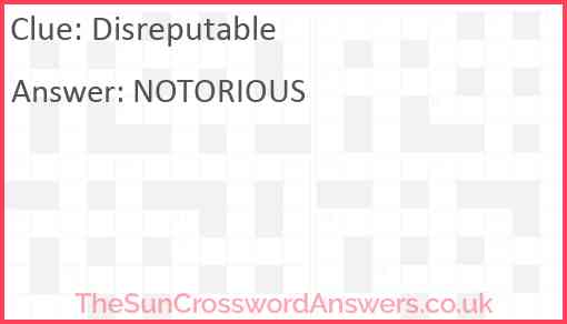 Disreputable is a crossword clue for which we have 2 possible answer and we have spotted 3 times in our database. This crossword clue was last seen on 25 August 2024 in The Sun Coffee Time Crossword puzzle!