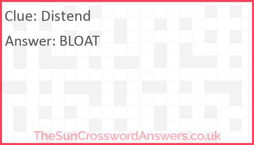Distend is a crossword clue for which we have 1 possible answer and we have spotted 3 times in our database. This crossword clue was last seen on 18 November 2022 in The Sun Coffee Time Crossword puzzle!