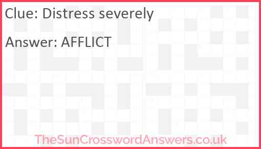 Distress severely is a crossword clue for which we have 1 possible answer and we have spotted 2 times in our database. This crossword clue was last seen on 03 August 2023 in The Sun Coffee Time Crossword puzzle!