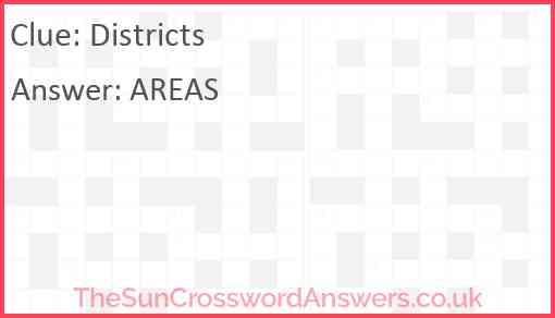 Districts is a crossword clue for which we have 1 possible answer and we have spotted 3 times in our database. This crossword clue was last seen on 11 May 2023 in The Sun Coffee Time Crossword puzzle!