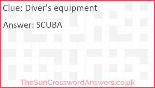 Diver's equipment is a crossword clue for which we have 1 possible answer and we have spotted 3 times in our database. This crossword clue was last seen on 01 October 2021 in The Sun Coffee Time Crossword puzzle!