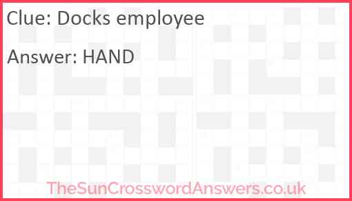Docks employee is a crossword clue for which we have 1 possible answer and we have spotted 2 times in our database. This crossword clue was last seen on 04 September 2022 in The Sun Coffee Time Crossword puzzle!
