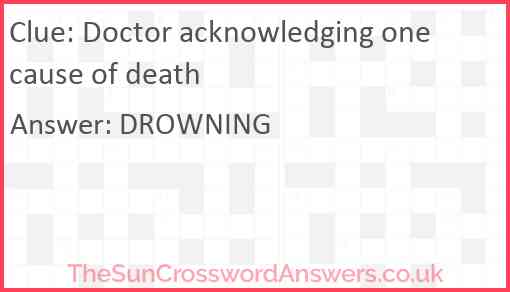 Doctor acknowledging one cause of death is a crossword clue for which we have 1 possible answer and we have spotted 1 times in our database. This crossword clue was last seen on 29 November 2020 in The Sun Cryptic Crossword puzzle!