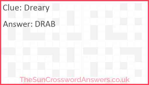 Dreary is a crossword clue for which we have 1 possible answer and we have spotted 2 times in our database. This crossword clue was last seen on 16 August 2023 in The Sun Coffee Time Crossword puzzle!