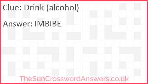 Drink (alcohol) is a crossword clue for which we have 1 possible answer and we have spotted 2 times in our database. This crossword clue was last seen on 23 November 2022 in The Sun Coffee Time Crossword puzzle!