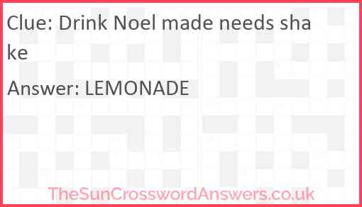 Drink Noel made needs shake is a crossword clue for which we have 1 possible answer and we have spotted 1 times in our database. This crossword clue was last seen on 28 February 2024 in The Sun Cryptic Crossword puzzle!