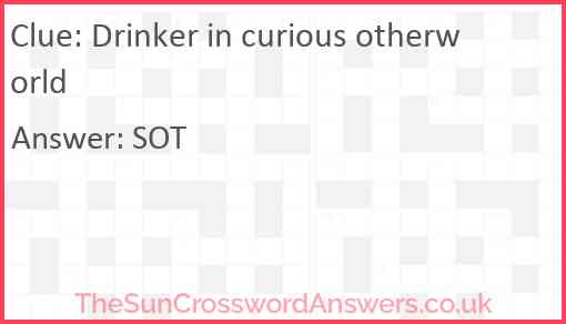 Drinker in curious otherworld is a crossword clue for which we have 1 possible answer and we have spotted 3 times in our database. This crossword clue was last seen on 10 July 2025 in The Sun Cryptic Crossword puzzle!