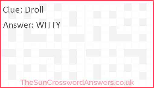 Droll is a crossword clue for which we have 1 possible answer and we have spotted 1 times in our database. This crossword clue was last seen on 16 July 2019 in The Sun Coffee Time Crossword puzzle!