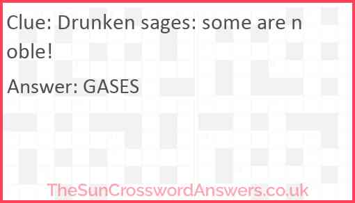 Drunken sages: some are noble! is a crossword clue for which we have 1 possible answer and we have spotted 2 times in our database. This crossword clue was last seen on 28 March 2023 in The Sun Cryptic Crossword puzzle!