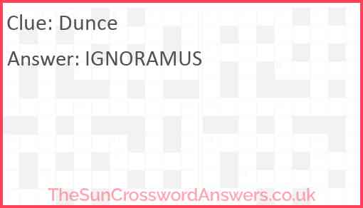 Dunce is a crossword clue for which we have 3 possible answer and we have spotted 6 times in our database. This crossword clue was last seen on 16 March 2025 in The Sun Coffee Time Crossword puzzle!