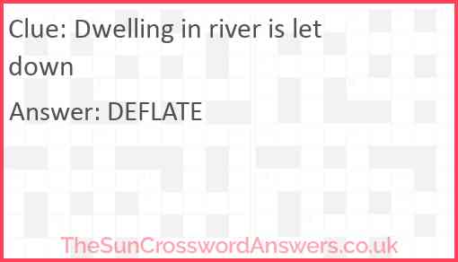 Dwelling in river is let down is a crossword clue for which we have 1 possible answer and we have spotted 2 times in our database. This crossword clue was last seen on 29 November 2022 in The Sun Cryptic Crossword puzzle!