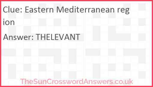 Eastern Mediterranean region is a crossword clue for which we have 1 possible answer and we have spotted 1 times in our database. This crossword clue was last seen on 09 August 2020 in The Sun Coffee Time Crossword puzzle!