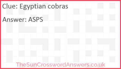 Egyptian cobras is a crossword clue for which we have 1 possible answer and we have spotted 6 times in our database. This crossword clue was last seen on 08 July 2023 in The Sun Coffee Time Crossword puzzle!