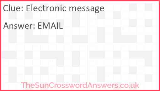 Electronic message is a crossword clue for which we have 1 possible answer and we have spotted 1 times in our database. This crossword clue was last seen on 16 July 2024 in The Sun Coffee Time Crossword puzzle!
