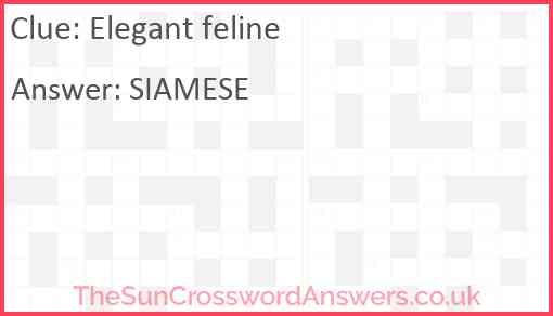 Elegant feline is a crossword clue for which we have 1 possible answer and we have spotted 1 times in our database. This crossword clue was last seen on 21 July 2023 in The Sun Coffee Time Crossword puzzle!