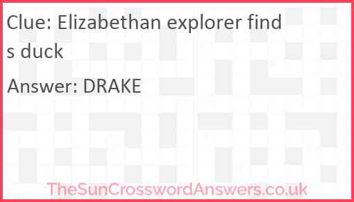 Elizabethan explorer finds duck is a crossword clue for which we have 1 possible answer and we have spotted 3 times in our database. This crossword clue was last seen on 27 September 2023 in The Sun Cryptic Crossword puzzle!
