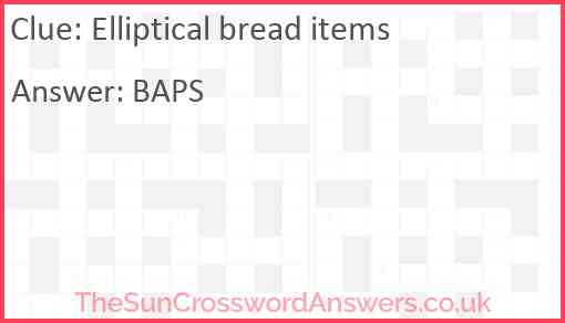Elliptical bread items is a crossword clue for which we have 1 possible answer and we have spotted 1 times in our database. This crossword clue was last seen on 29 December 2024 in The Sun Coffee Time Crossword puzzle!