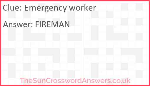 Emergency worker is a crossword clue for which we have 1 possible answer and we have spotted 3 times in our database. This crossword clue was last seen on 31 March 2024 in The Sun Coffee Time Crossword puzzle!