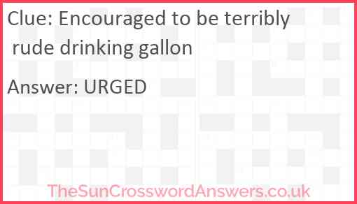 Encouraged to be terribly rude drinking gallon is a crossword clue for which we have 1 possible answer and we have spotted 2 times in our database. This crossword clue was last seen on 07 August 2023 in The Sun Cryptic Crossword puzzle!