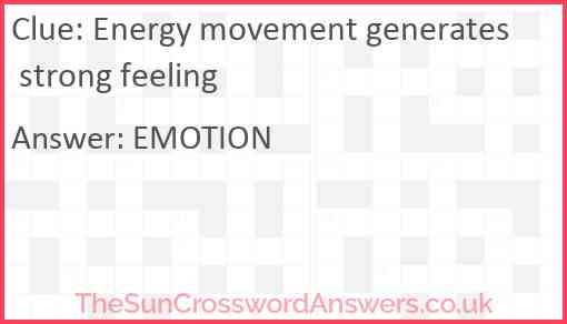Energy movement generates strong feeling is a crossword clue for which we have 1 possible answer and we have spotted 3 times in our database. This crossword clue was last seen on 19 October 2023 in The Sun Cryptic Crossword puzzle!