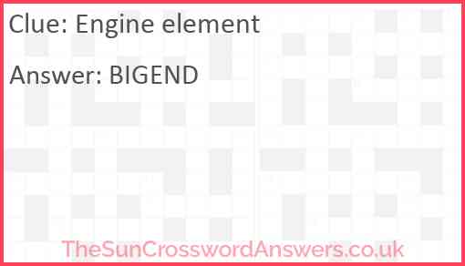 Engine element is a crossword clue for which we have 1 possible answer and we have spotted 2 times in our database. This crossword clue was last seen on 17 March 2025 in The Sun Coffee Time Crossword puzzle!