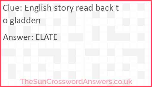 English story read back to gladden is a crossword clue for which we have 1 possible answer and we have spotted 2 times in our database. This crossword clue was last seen on 10 September 2024 in The Sun Cryptic Crossword puzzle!