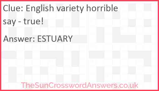 English variety horrible say - true! is a crossword clue for which we have 1 possible answer and we have spotted 1 times in our database. This crossword clue was last seen on 18 June 2020 in The Sun Cryptic Crossword puzzle!