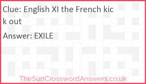 English XI the French kick out is a crossword clue for which we have 1 possible answer and we have spotted 3 times in our database. This crossword clue was last seen on 23 December 2023 in The Sun Cryptic Crossword puzzle!