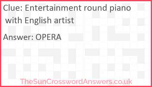 Entertainment round piano with English artist is a crossword clue for which we have 1 possible answer and we have spotted 3 times in our database. This crossword clue was last seen on 16 August 2023 in The Sun Cryptic Crossword puzzle!