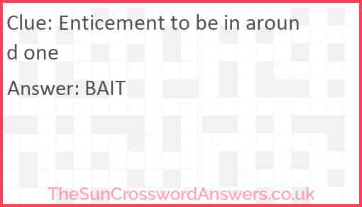 Enticement to be in around one is a crossword clue for which we have 1 possible answer and we have spotted 2 times in our database. This crossword clue was last seen on 23 March 2024 in The Sun Cryptic Crossword puzzle!