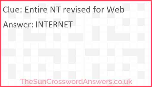 Entire NT revised for Web is a crossword clue for which we have 1 possible answer and we have spotted 3 times in our database. This crossword clue was last seen on 21 July 2025 in The Sun Cryptic Crossword puzzle!