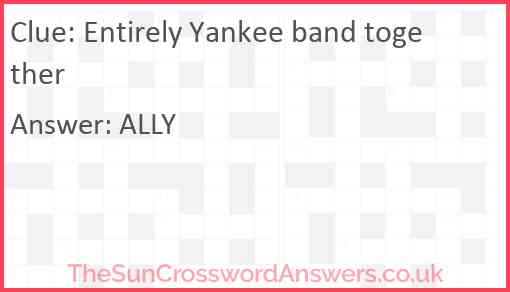 Entirely Yankee band together is a crossword clue for which we have 1 possible answer and we have spotted 2 times in our database. This crossword clue was last seen on 03 October 2022 in The Sun Cryptic Crossword puzzle!