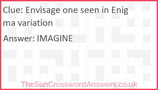 Envisage one seen in Enigma variation is a crossword clue for which we have 1 possible answer and we have spotted 1 times in our database. This crossword clue was last seen on 20 February 2024 in The Sun Cryptic Crossword puzzle!