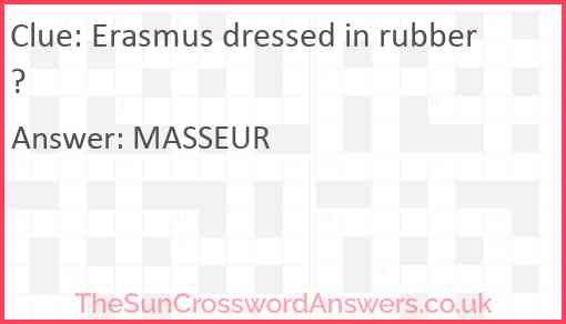 Erasmus dressed in rubber? is a crossword clue for which we have 1 possible answer and we have spotted 2 times in our database. This crossword clue was last seen on 04 June 2023 in The Sun Cryptic Crossword puzzle!