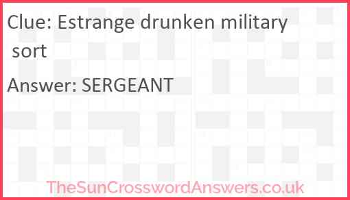Estrange drunken military sort is a crossword clue for which we have 1 possible answer and we have spotted 1 times in our database. This crossword clue was last seen on 07 March 2021 in The Sun Cryptic Crossword puzzle!