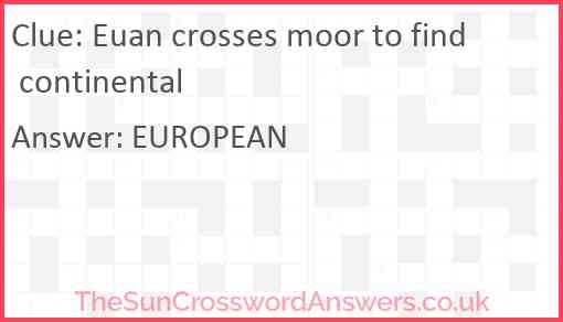 Euan crosses moor to find continental is a crossword clue for which we have 1 possible answer and we have spotted 1 times in our database. This crossword clue was last seen on 02 March 2022 in The Sun Cryptic Crossword puzzle!