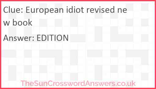 European idiot revised new book is a crossword clue for which we have 1 possible answer and we have spotted 2 times in our database. This crossword clue was last seen on 31 May 2023 in The Sun Cryptic Crossword puzzle!