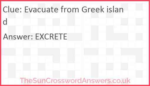 Evacuate from Greek island is a crossword clue for which we have 1 possible answer and we have spotted 1 times in our database. This crossword clue was last seen on 19 August 2024 in The Sun Cryptic Crossword puzzle!