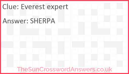 Everest expert is a crossword clue for which we have 1 possible answer and we have spotted 2 times in our database. This crossword clue was last seen on 11 January 2025 in The Sun Coffee Time Crossword puzzle!