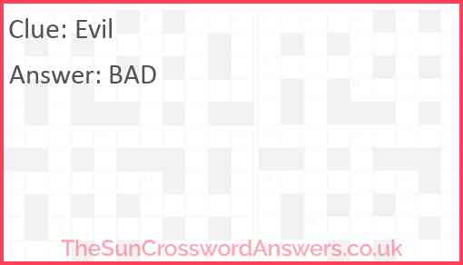 Evil is a crossword clue for which we have 1 possible answer and we have spotted 5 times in our database. This crossword clue was last seen on 30 July 2022 in The Sun Coffee Time Crossword puzzle!