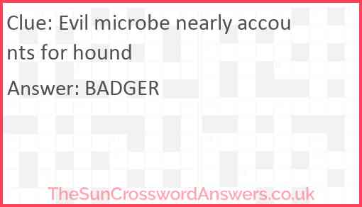 Evil microbe nearly accounts for hound is a crossword clue for which we have 1 possible answer and we have spotted 1 times in our database. This crossword clue was last seen on 07 June 2022 in The Sun Cryptic Crossword puzzle!
