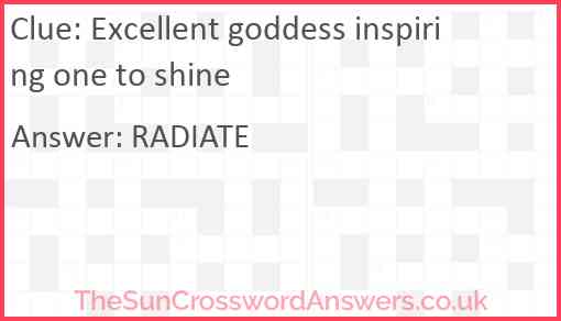 Excellent goddess inspiring one to shine is a crossword clue for which we have 1 possible answer and we have spotted 2 times in our database. This crossword clue was last seen on 15 June 2024 in The Sun Cryptic Crossword puzzle!
