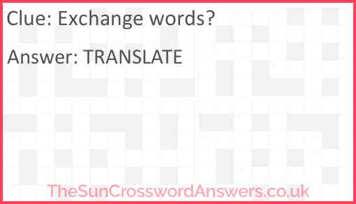 Exchange words? is a crossword clue for which we have 1 possible answer and we have spotted 3 times in our database. This crossword clue was last seen on 11 July 2025 in The Sun Cryptic Crossword puzzle!