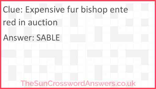 Expensive fur bishop entered in auction is a crossword clue for which we have 1 possible answer and we have spotted 3 times in our database. This crossword clue was last seen on 31 October 2024 in The Sun Cryptic Crossword puzzle!
