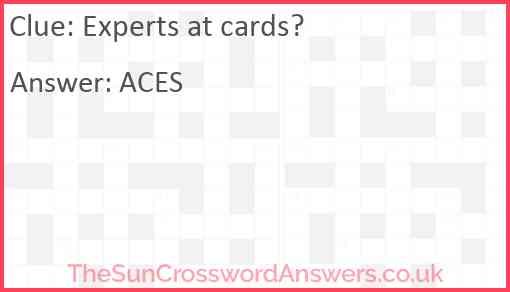 Experts at cards? is a crossword clue for which we have 1 possible answer and we have spotted 2 times in our database. This crossword clue was last seen on 02 January 2024 in The Sun Cryptic Crossword puzzle!